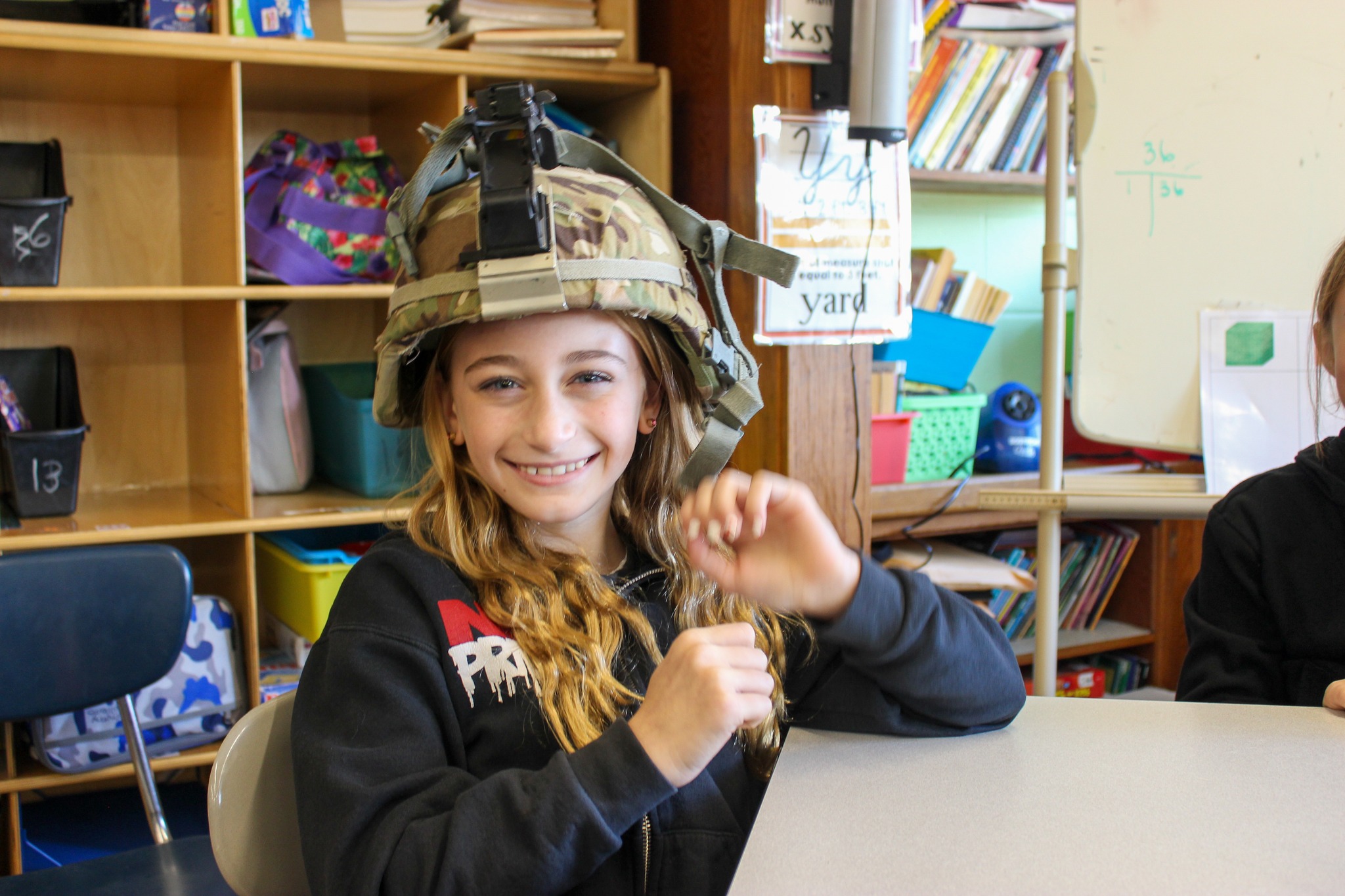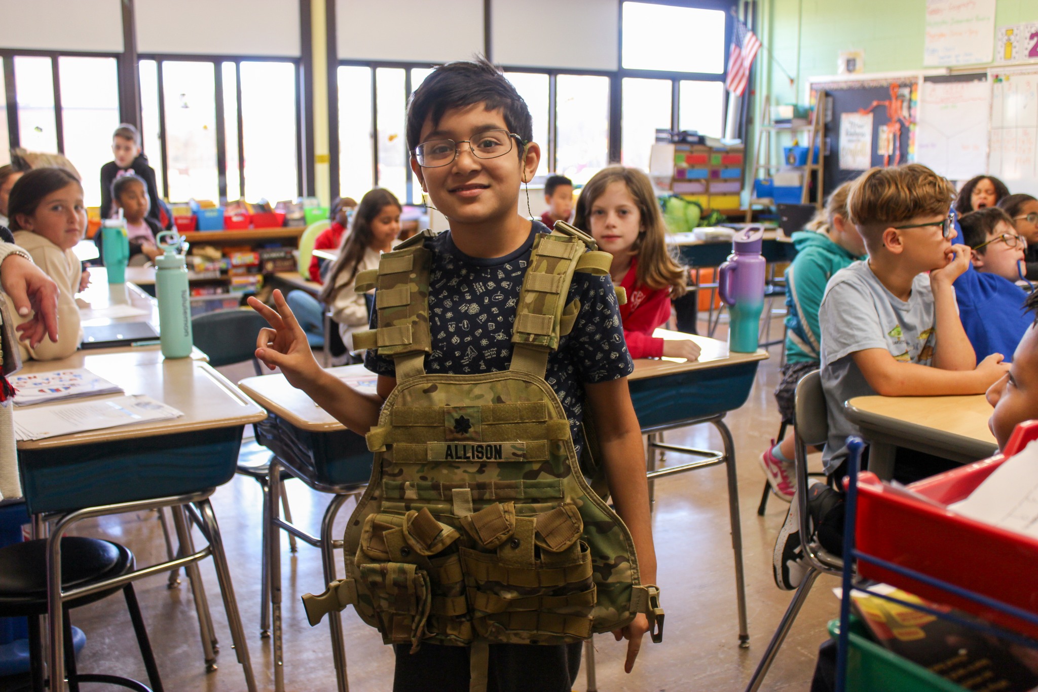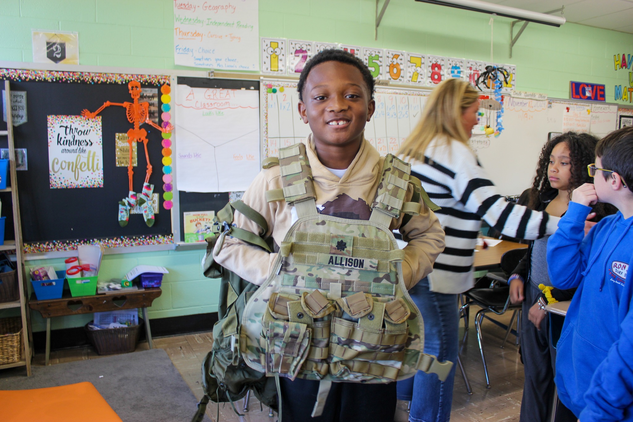 Mr. Allison passed around some of his gear, including a compass, tactical vest and helmet, so the students could get a feel for what life as a soldier is like.