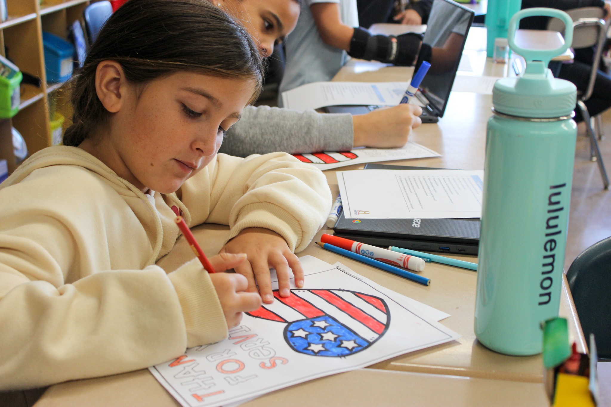 To show their appreciation, the students also colored thank-you cards for the veterans. A special thank you to Mr. Carroll and Mr. Allison for their service and for taking the time to share their stories with us. We are grateful for their bravery and sacrifice and for the opportunity to learn from these two generations of veterans who have served our country with honor. β€οΈπŸ’™